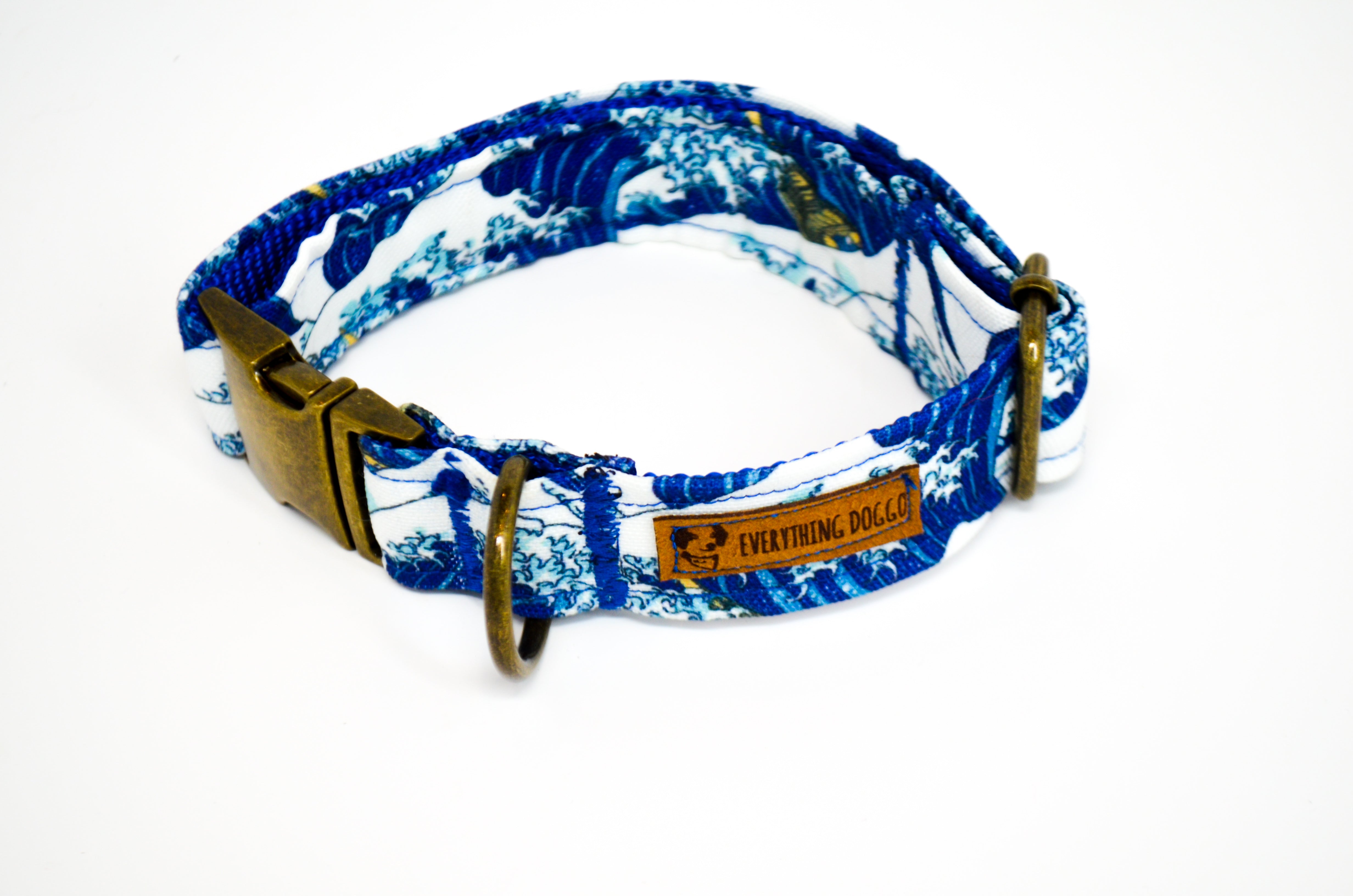 Dog collar featuring the Great Wave. It is named Hokusai after the original artist.