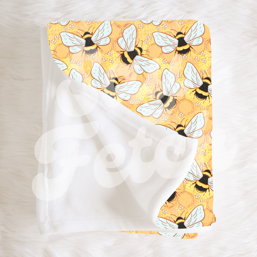 Our minky blankets come in 50" x 60" and 60" x 80." Each blanket comes with your choice of print on one side and white on the back side.