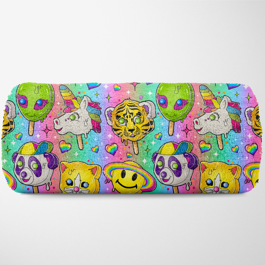 Our towels come in 30" x 60." Each towel comes with print on the front side and white cotton on the back side.