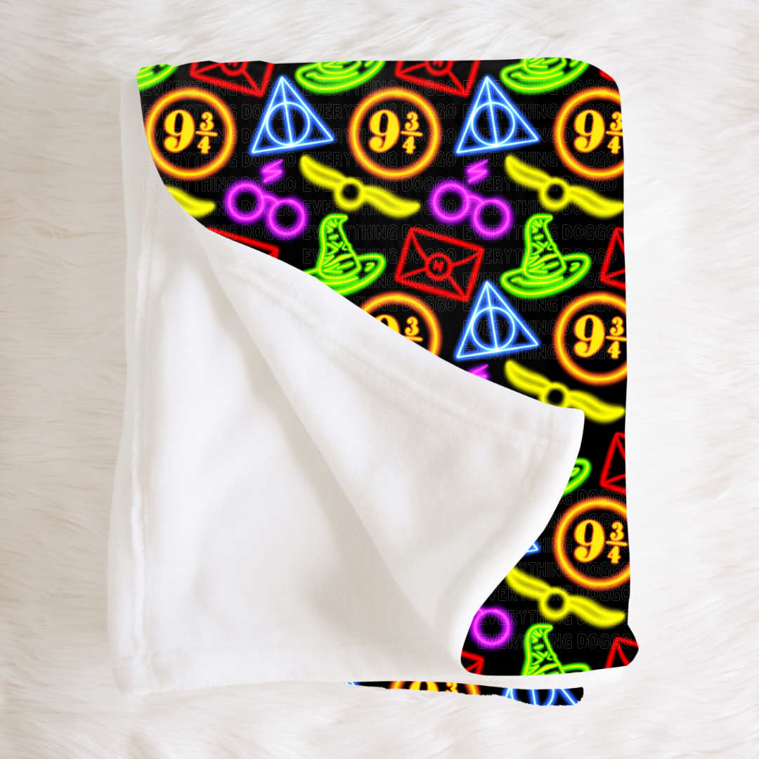 Our minky blankets come in 50" x 60" and 60" x 80." Each blanket comes with your choice of print on one side and white on the back side.