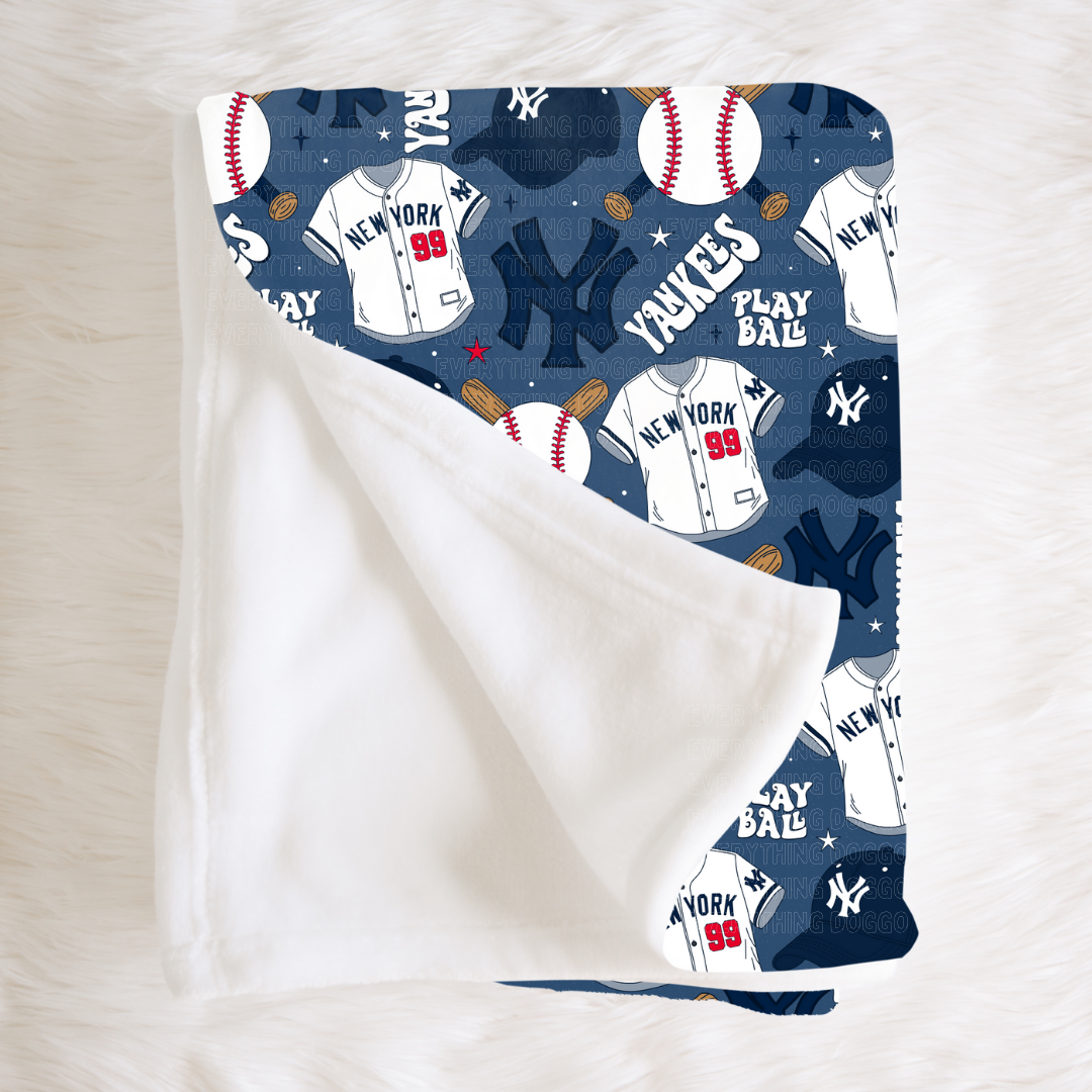 Our minky blankets come in 50" x 60" and 60" x 80." Each blanket comes with your choice of print on one side and white on the back side.
